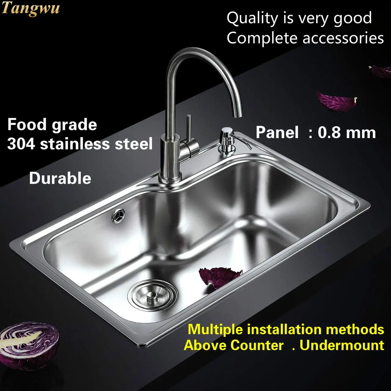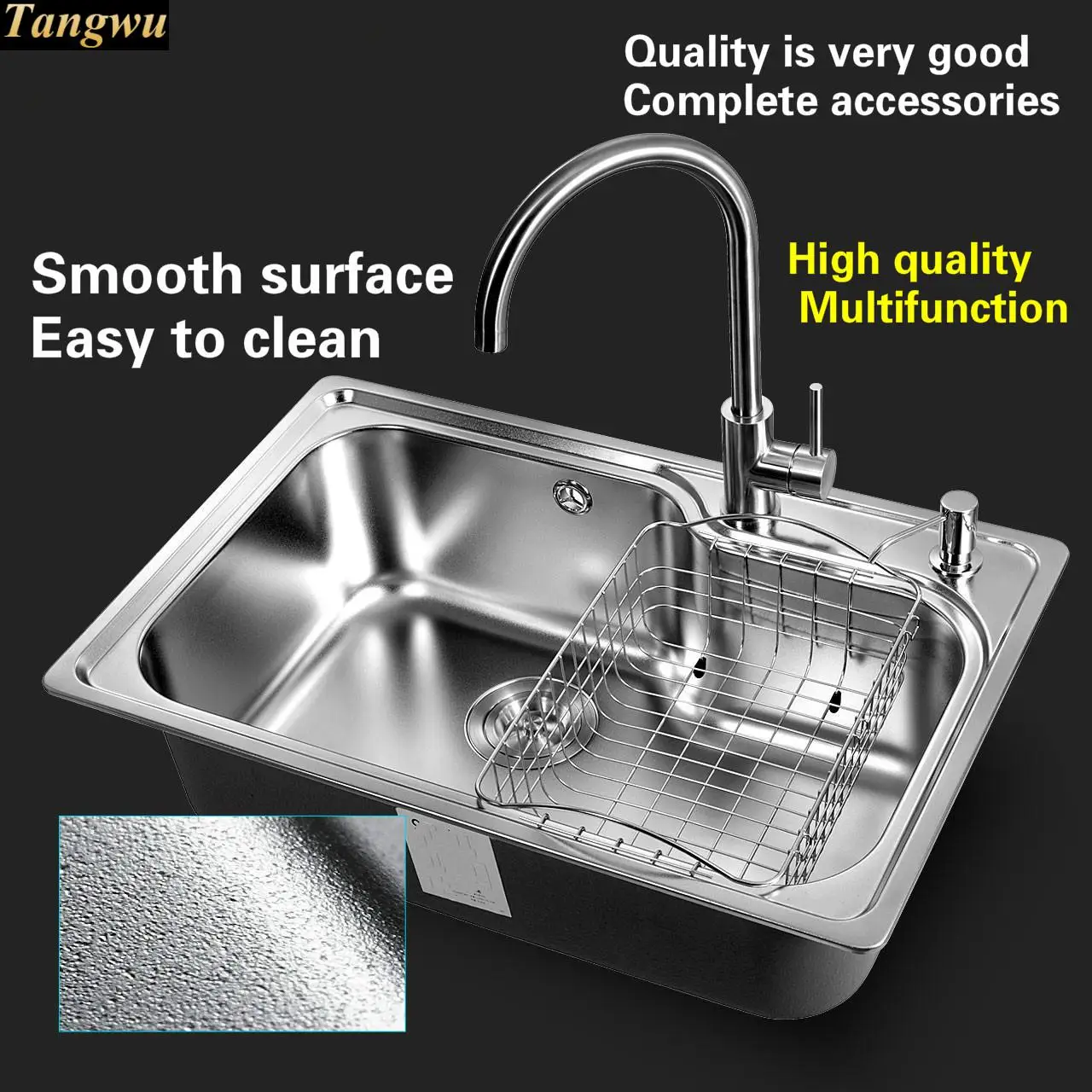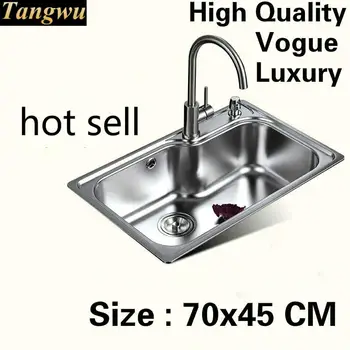Best . (0% Off) Buy Free Shipping Home Wash Vegetables Large Kitchen Single Trough Sink High Quality Stretch Faucet 304 Stainless Steel 700x450 MM Price Online.